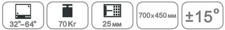 Совместимость ТВ Размер: 32 дюймов ∼ 64 дюймов Грузоподъемность: 60 кг